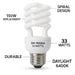 Daylight Light Bulb CFL 33 W 150 Watt Repl White Compact Fluorescent 6400K