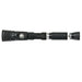 The light is 5.9" long, 1.4" in diameter, and weighs 5.3 ounces. It has an aluminum housing with a rubberized grip for comfortable handling.