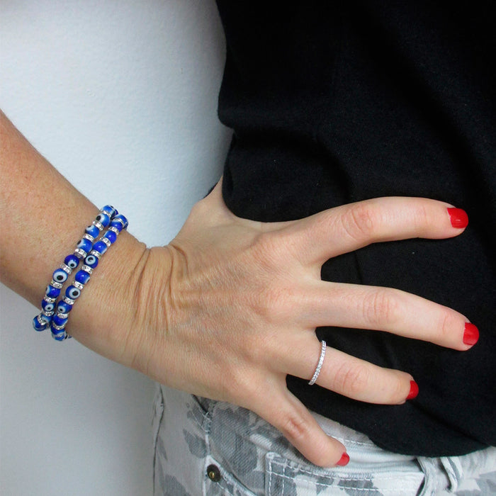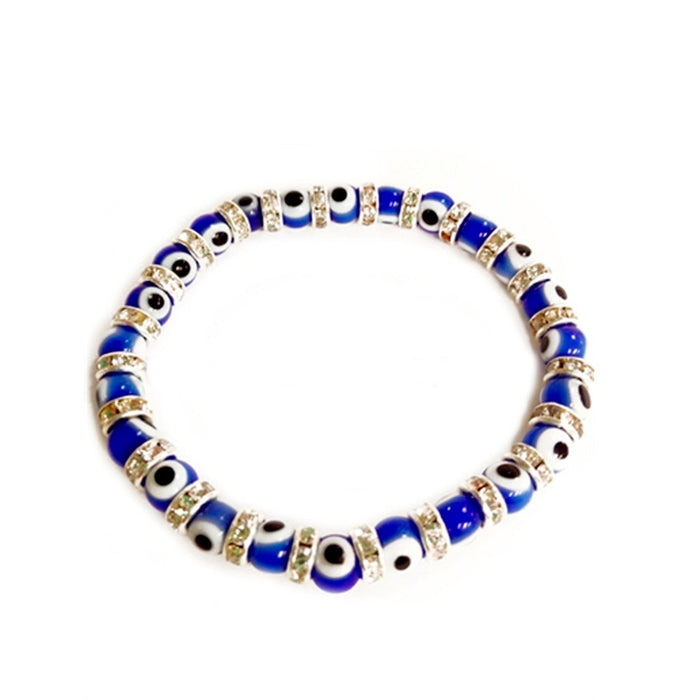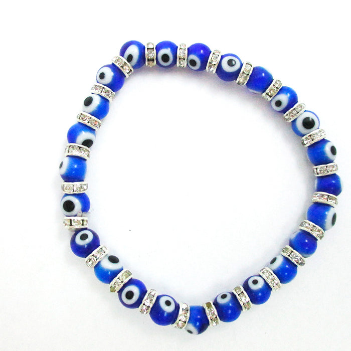 Evil Eye Glass Beads Bracelet Stretch Hamsa Lampwork 6mm Good Luck Kabbalah Blue