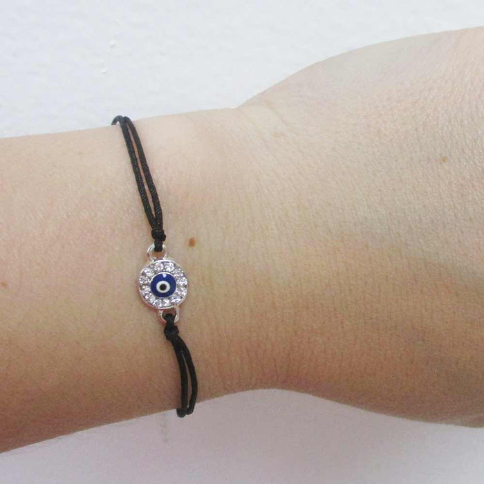 Lucky Eye Bracelet Crystal Silver Black String Evil Charm Hamsa Mati Fatima Gift
