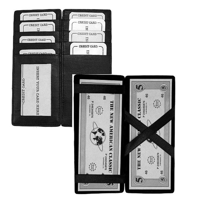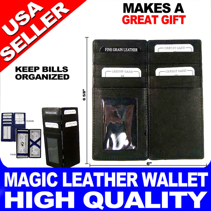Large black hand crafted genuine leather magic wallet with quick access ID holder.