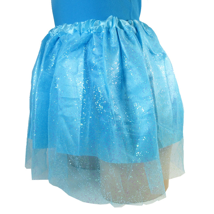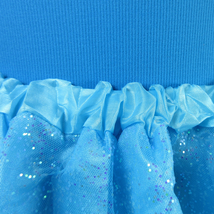 2-layered ruffled mesh with dye to match shiny elastic waist band color. The ruffled mesh adds a lot of flare when twirled!