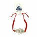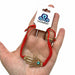 The hand charm is made out of brass, and the red bracelet is made out of macrame.