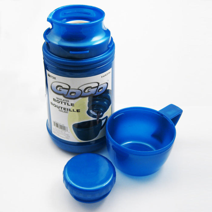 New 8 oz. Plastic Insulated Food & Beverage Bottle Available In Dee Blue Or Burgundy !