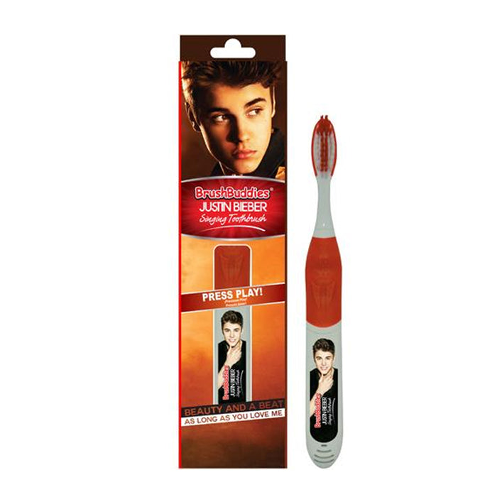 The brush buddies Justin Bieber singing toothbrush plays two Justin Bieber hit songs: Beauty and beat and As long as you love me.