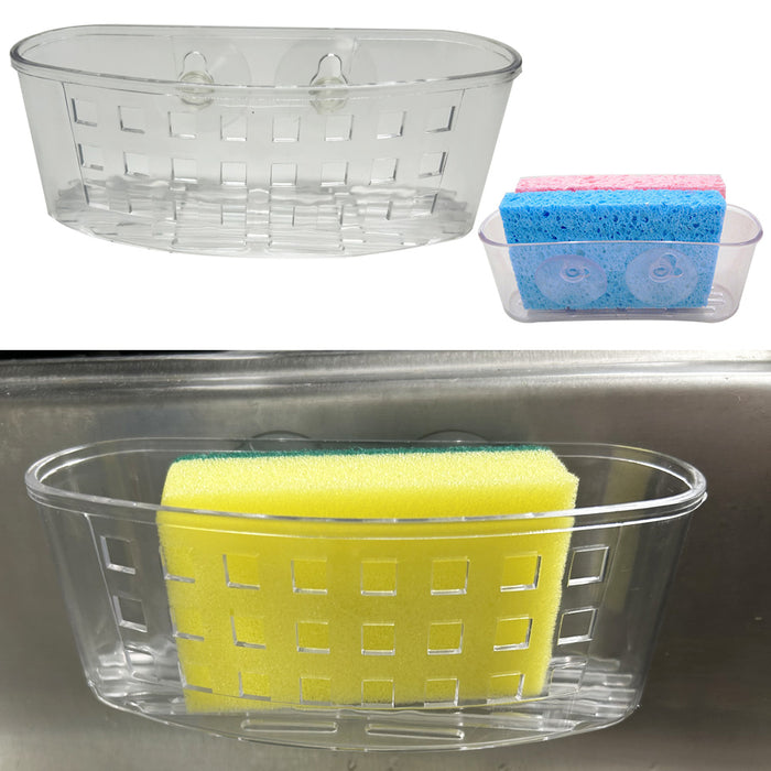 Kitchen Sink Caddy Organizer Sponge Dish Brush Holder Suction Cup Clear Plastic