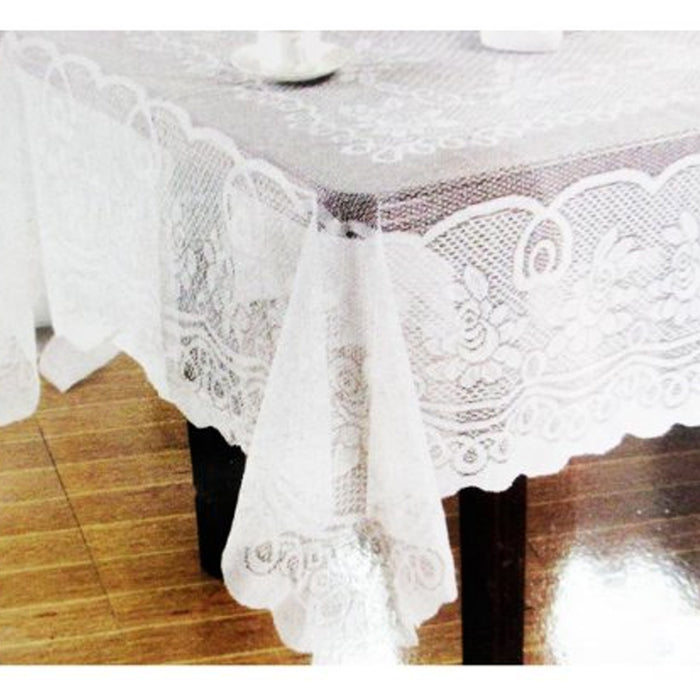 Lace Tablecloth Beige Vinyl 60"X90" Cover Wedding Floral Vintage Dinning Tabl