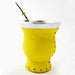 Yellow Mate Gourd Leather Glass inside with Straw Argentina Gaucho Drink Tea Washeable