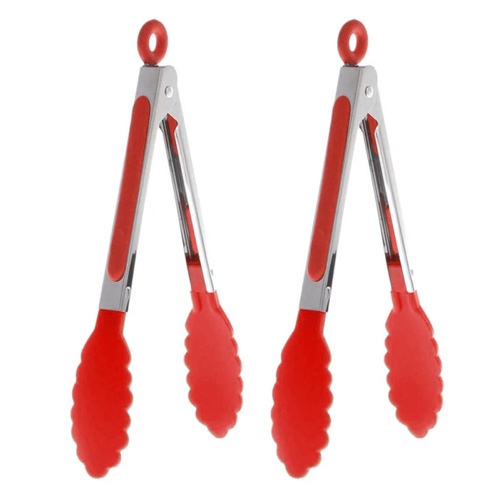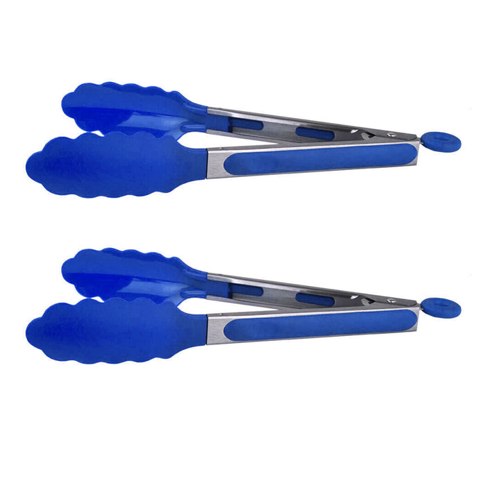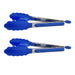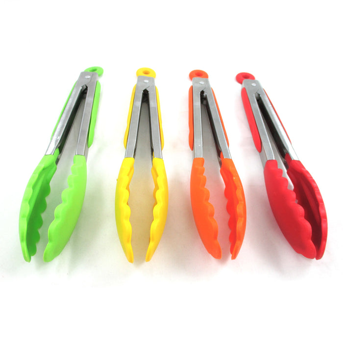 These long modern silicone locking tongs are made with stainless steel and colored silicone accents.