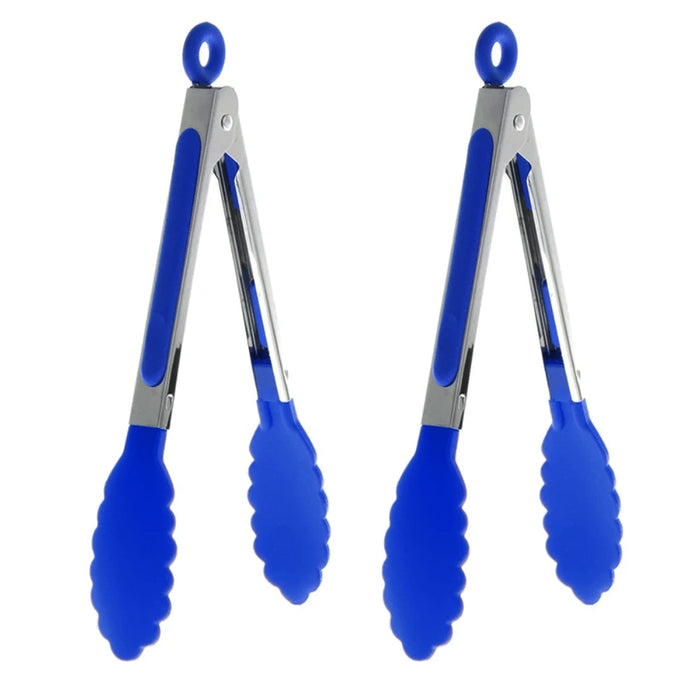 Multi Purpose Metal Tongs Kitchen Grill BBQ Salad Cooking Serving Bread 10" NEW