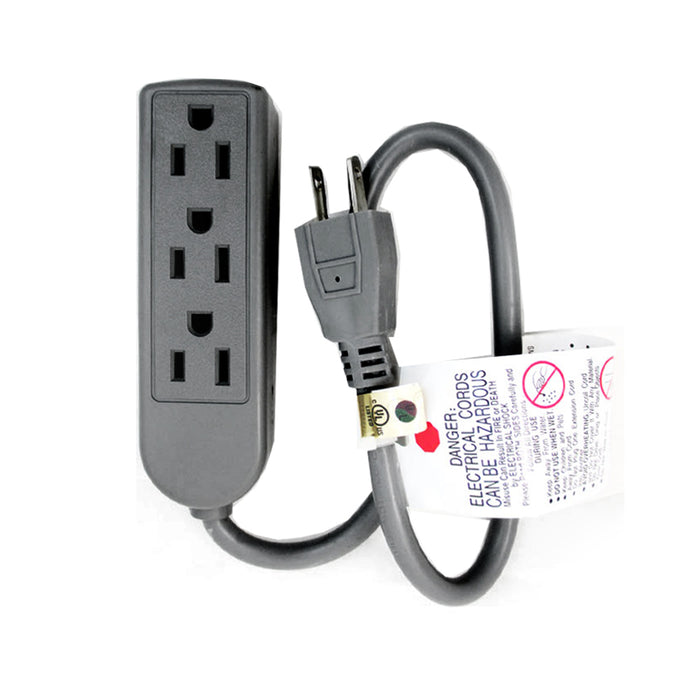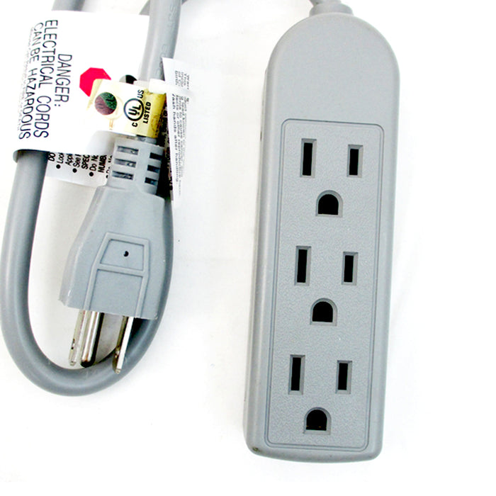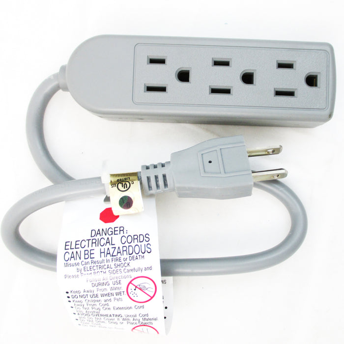 Extension Cord 3 Outlet Power Strip Grounded Office Home 125V 60Hz 13A 1 Ft