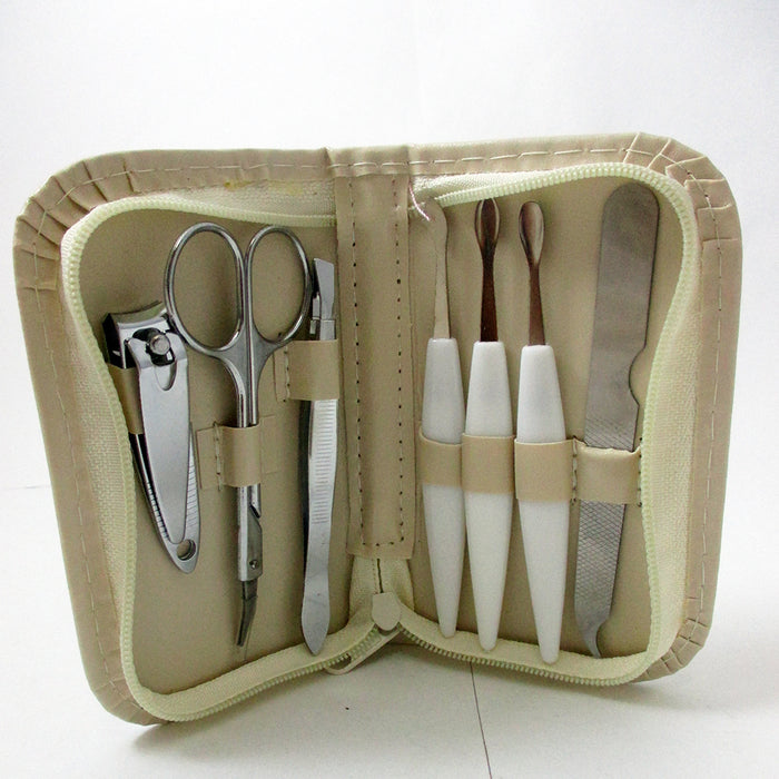 7 Pc Manicure Set Nail Care Clippers Cuticle Travel Grooming Case Pink Or Beige New