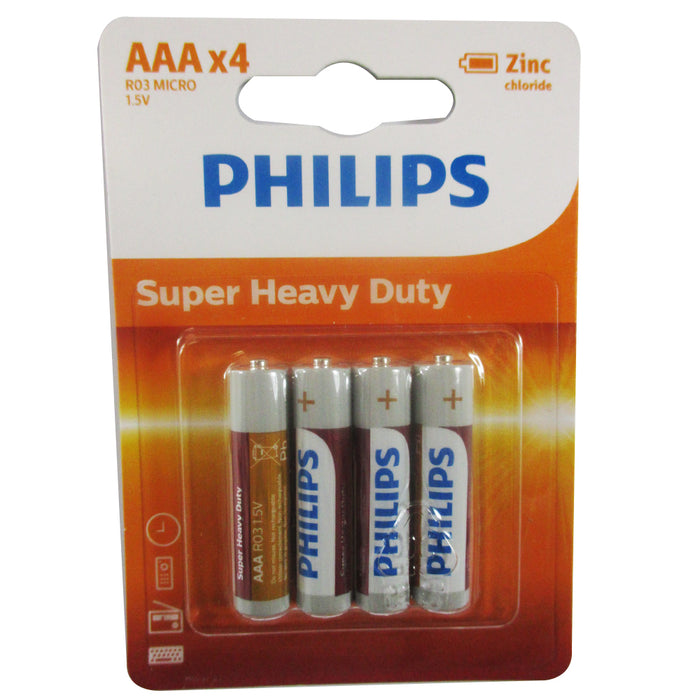 Keep your electronics running longer with Philips Super Heavy Duty Zinc-Chloride Batteries.