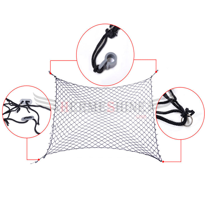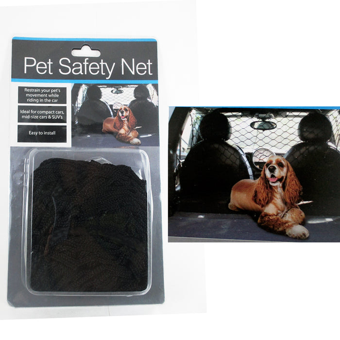 Restrain your pet's movement while riding in the car with this convenient pet safety net featuring a durable black nylon net with sturdy metal hooks to separate the back section of vehicles.