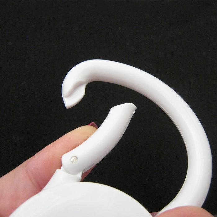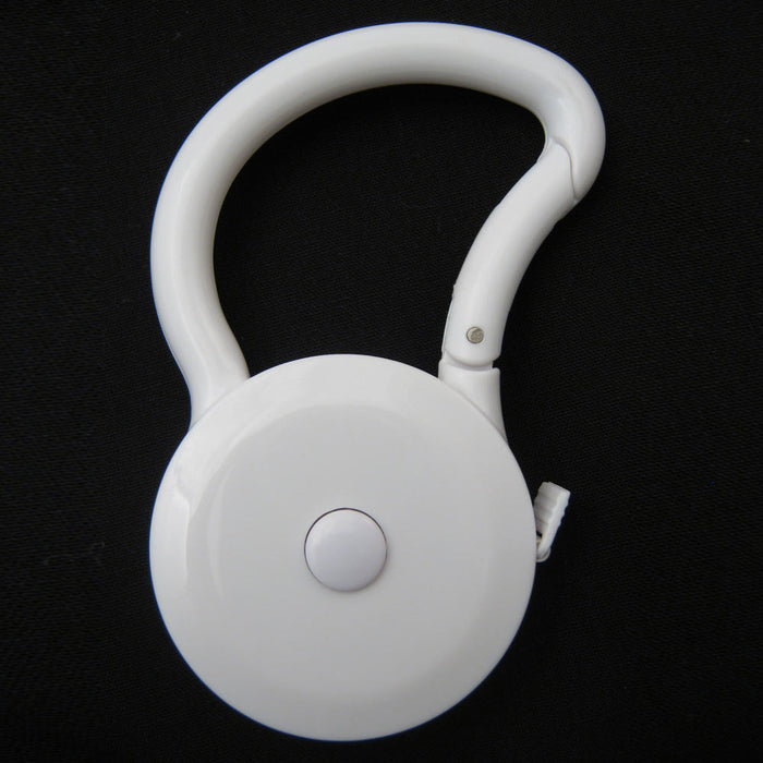Tape measure easily clips to handbag tote, belt loop or key chain.