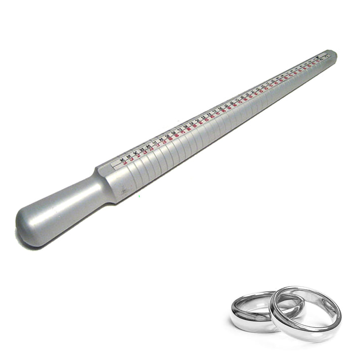 The Stick: This high quality ring sizer measures US and European sizes. In one side it has a scale from 1 to 36 and from 41 to 76 and in its opposite side has a US scale from 1 to 15.5 in 1/4 steps and diameter from 13 to 24 in mm.