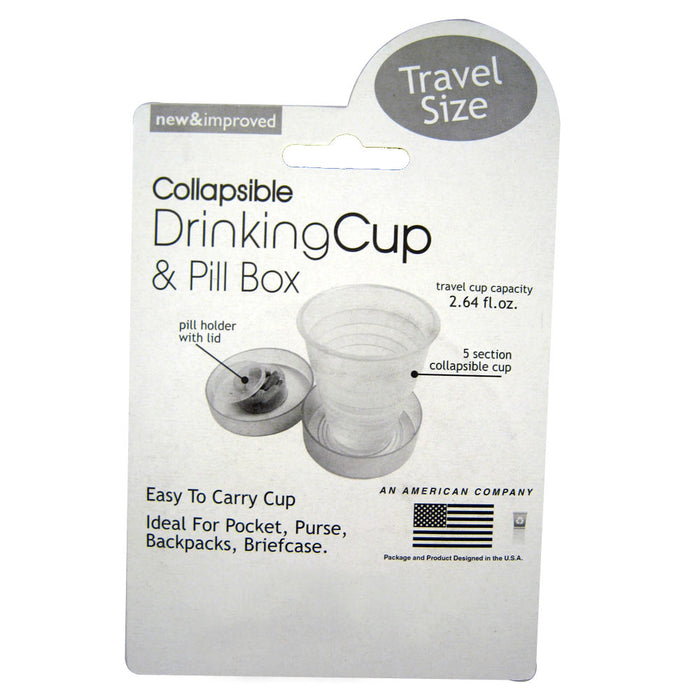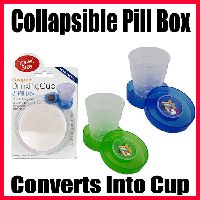 Travel Size Unusual Collapsible Drinking Cup + Pill Holder Box Makes a Great Gift !!