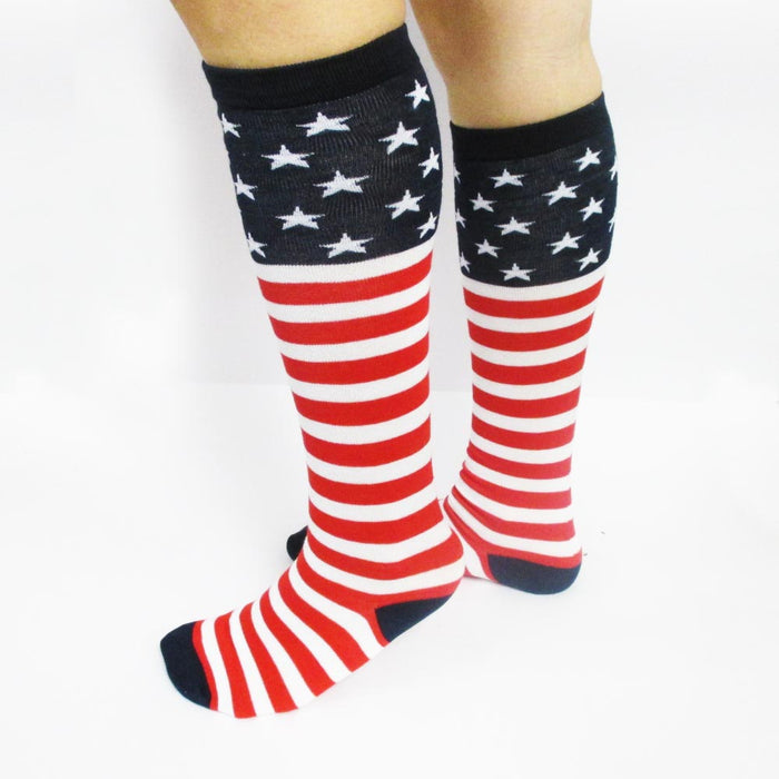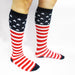 USA Red White Blue Socks American Flag Knee High Womans Ladies Striped Leggings