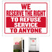 We Reserve the Right to Refuse Service to Anyone Business Property Office Sign
