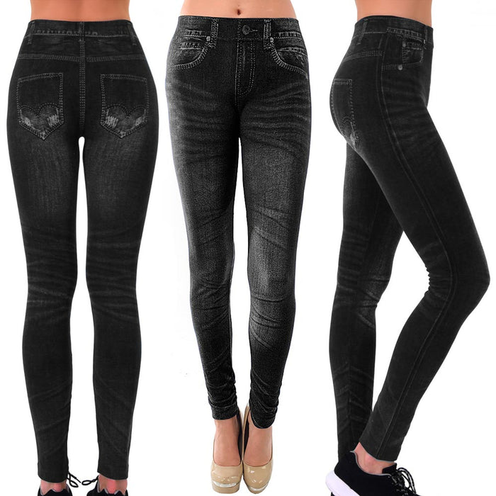 Women Black Jeggings Pants Sexy Leggings Skinny Stretchy Pencil Jeans Print Soft