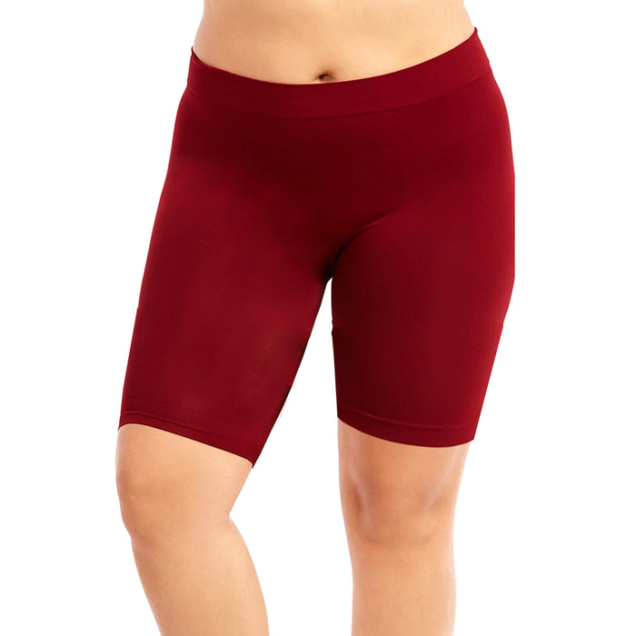 Women Seamless Plus One Size Bermuda Shorts Stretch Yoga Pants Leggings Dark Red